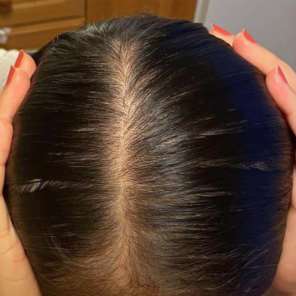 "Jeg begynte å miste hår rundt 40-50-årsalderen. Nå har jeg brukt Acceleroot® Hair Growth Oil i snart to år. Da jeg var på en lengre ferie og ikke brukte oljen, la jeg merke til at jeg mistet det nye håret som hadde vokst ut. Jeg begynte igjen å bruke oljen regelmessig, og nå er der hår der jeg tidligere var helt blank."